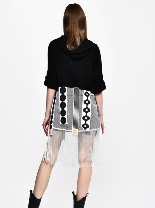 Πολυτελές Πανωφόρι με Γεωμετρικά Μοτίβα και Κρόσσια