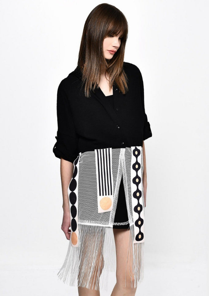 Εκλεπτυσμένη Αντίθεση: Συνδυασμός εκλεκτού μαύρου υφάσματος με λευκές, γεωμετρικές λεπτομέρειες και δίχτυ.
