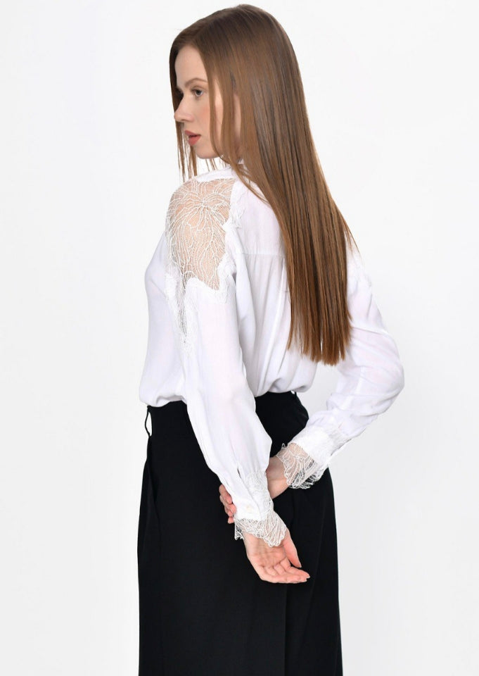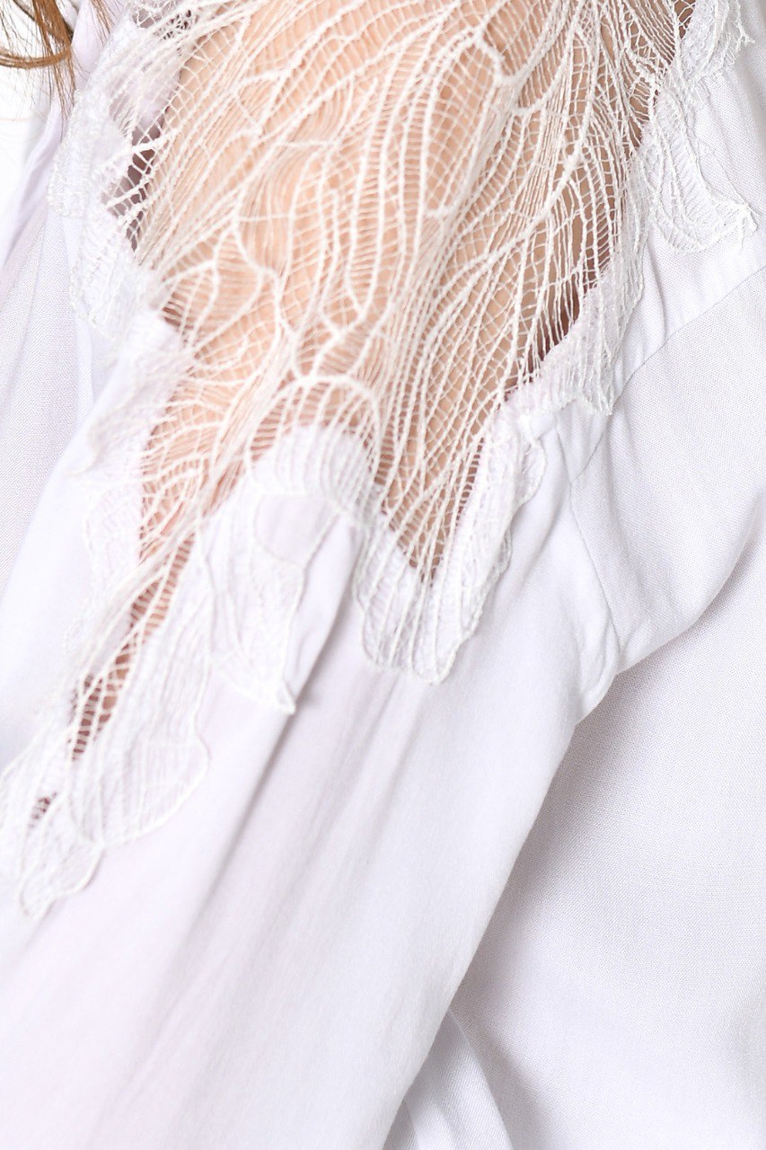 Λευκό Πουκάμισο με Λεπτομέρειες Δαντέλας