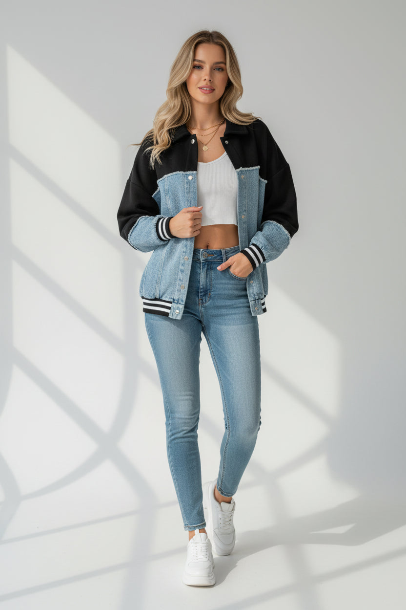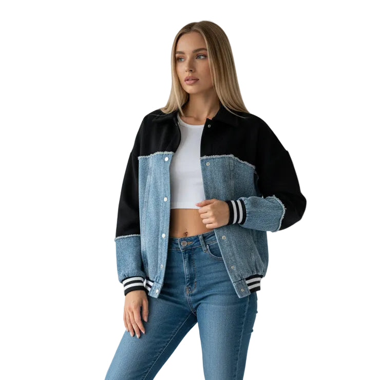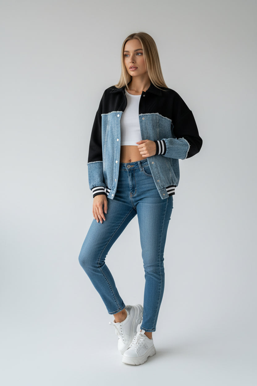 Bomber τζάκετ τζίν- Μαύρο & Μπλέ