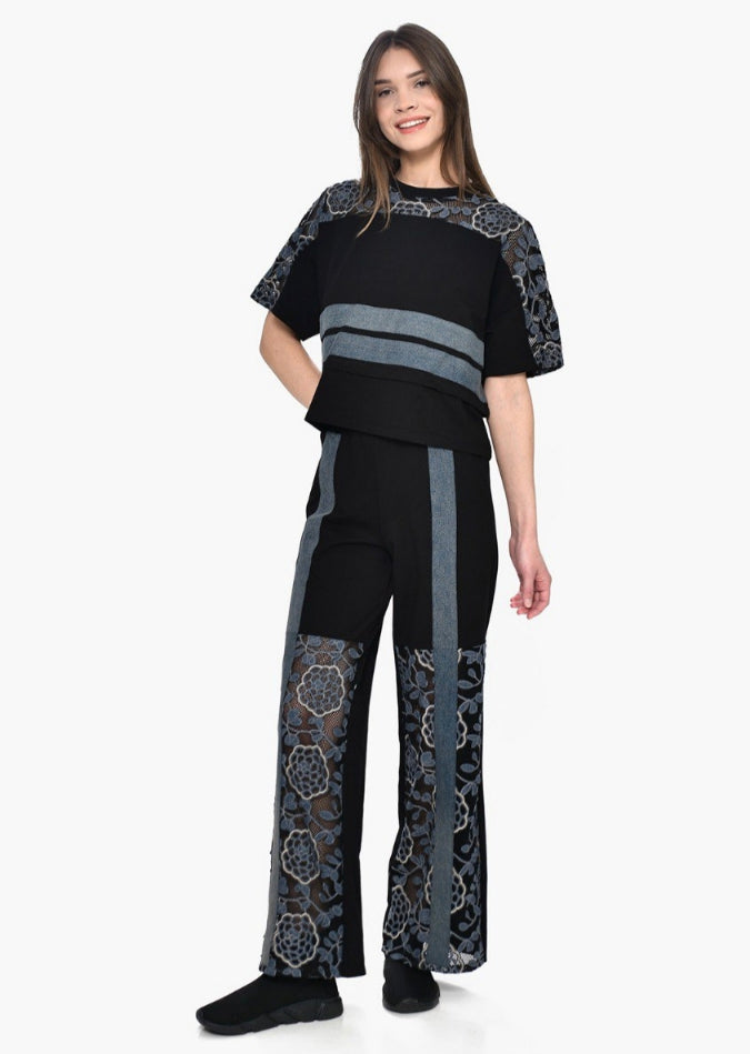 Μια ανατρεπτική προσέγγιση στο street style που συνδυάζει την αιχμηρή αισθητική του μαύρου με τη φινέτσα της δαντέλας. Το σετ δύο τεμαχίων που αποπνέει αυτοπεποίθηση και καλλιτεχνική διάθεση, μακριά από κάθε τι τετριμμένο.