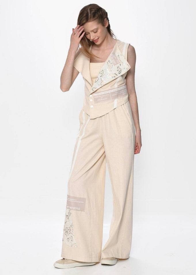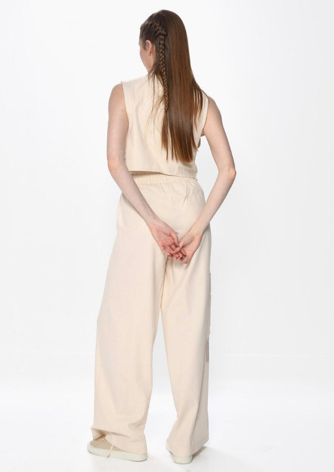 Wide-Leg παντελόνι: Σταθερή δομή και επιβλητική γραμμή, με κάθετα panels που επιμηκύνουν τη σιλουέτα και αναδεικνύουν τον ιδιαίτερο σχεδιασμό του.